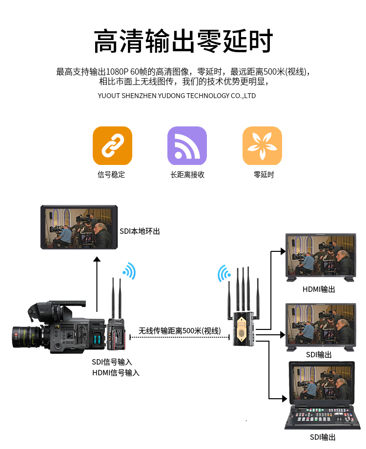 傳輸距離/延時 空曠距離最遠可達約500米 無壓縮零延時