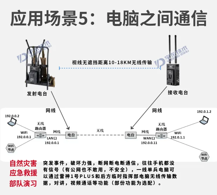 宇東技術雷神1號PLUS背負式高清無線圖傳電臺,是公司針對應急救援指揮、公安、反恐作戰(zhàn)、消防救援、邊防執(zhí)勤、海警海關巡檢、部隊拉練演習、森林消防等,在突發(fā)重大事件,斷網斷電,通信中斷的情況下,現(xiàn)場工作人員通過宇東雷神1號PLUS單兵圖傳電臺,把現(xiàn)場采集的數(shù)據實時無線傳輸?shù)街笓]車/臨時指揮部大屏幕,讓指揮部領導對現(xiàn)場情況一目了然,節(jié)省了到達現(xiàn)場的時間,可快速做緊急指揮調度,最大限度的減少突發(fā)事件帶來的各種損失。